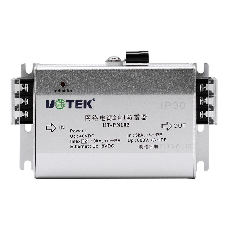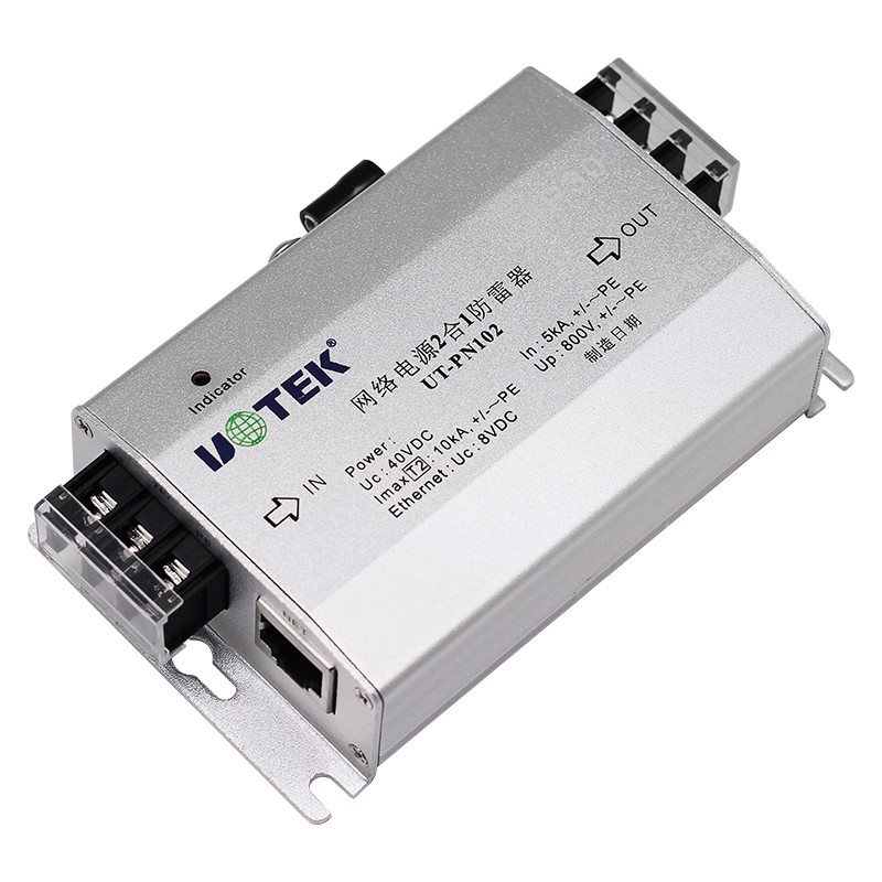 產(chǎn)品名稱:防雷器 產(chǎn)品型號(hào):UT-PN102 信號(hào)接口:網(wǎng)絡(luò)電源二合一