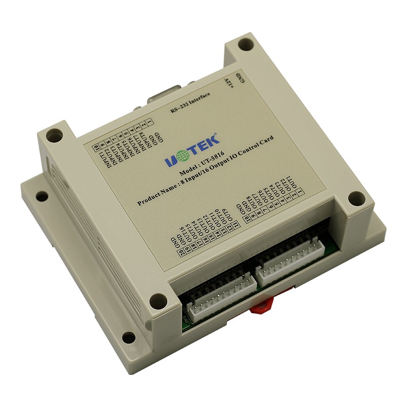 UT-5816是一款8通道干接點輸入,16通道電壓輸出模塊;輸入輸出都有對應的信號指示燈顯示狀態(tài)。工業(yè)級高標準設計,模塊可以通過一系列指令進行遠程控制,模塊和上位機是使用指令數(shù)據(jù)形式通過RS-232進行通訊。通訊波特率采用9600bps。廣泛應用于工業(yè)控制及自動化領域。